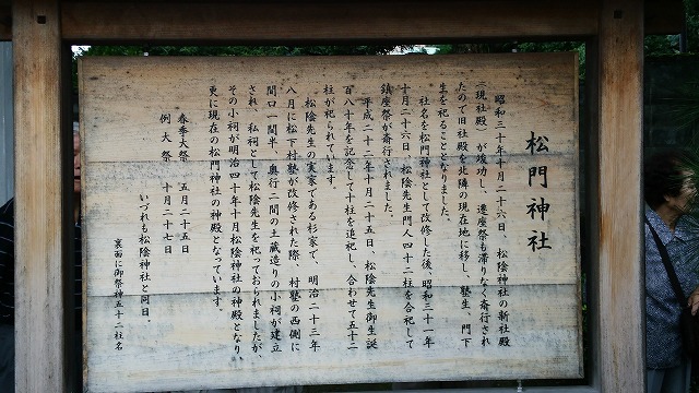 萩の続きです。松陰神社の境内に「松門神社」が造られていました。松下村塾の門下生のために建てられたものです。看板の裏には「伊藤博文」「山縣有朋」「日下玄随」・・びっしりと名前が書かれています。