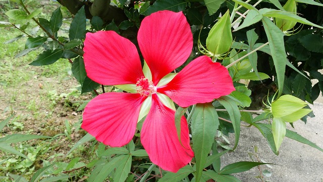 一日きりしか咲かない「もみじ葵」です。以前はどんどん増えて沢山咲いて見事でしたが、今は数本だけになりました。