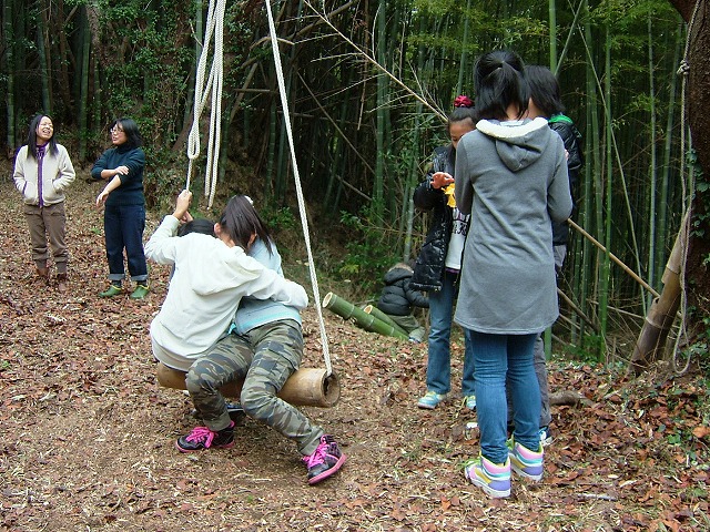 1年ぶりに整備し直した広場には手作りの「ブランコ」「滑り台」「お昼寝もできる基地」もあります。
