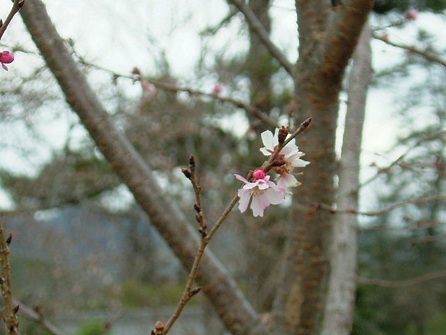 十月桜:学校の裏門があった辺りに10本くらい咲いていました。「コヒガンザクラ」の園芸種で春・秋の2回咲き。冬場も断続的に咲く桜です。