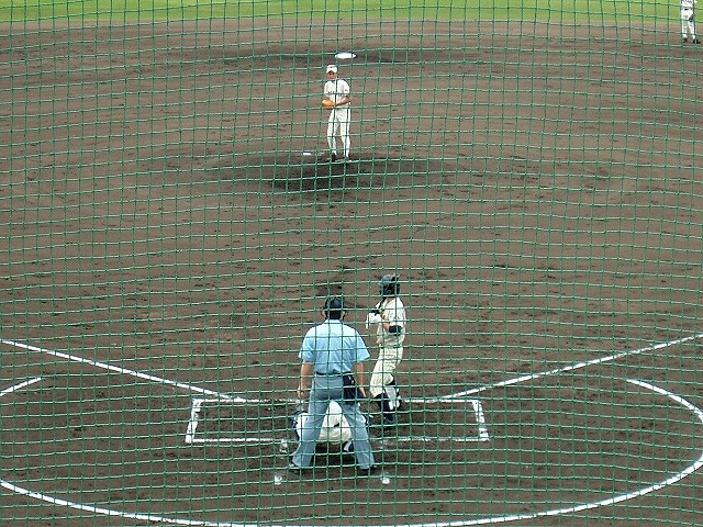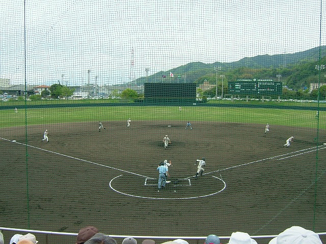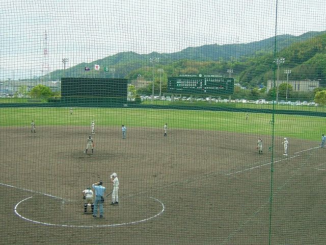 「2012年度春季県高校野球大会」:柳井学園との決勝戦はバックネット裏に陣取りました。昨日の雨で傷んだはずのグランドはきれいに整備されていました。