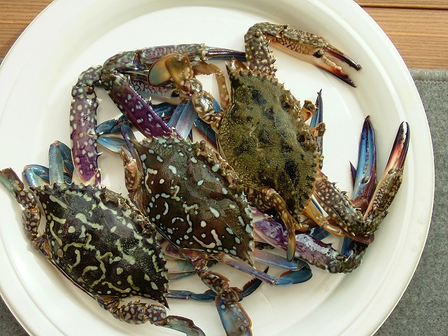 友人から「ワタリ蟹」をもらいました。塩茹でにしてそのまま食べましたが、大きさの割に身がしっかりと入っていて美味でした。この蟹のことを山口県のある場所(多分中部)では「月待ち蟹」と呼ぶと聞いたことがあります。中秋の名月を待つこの季節にぴったりのポエムを感じさせるネーミングだと思いません?