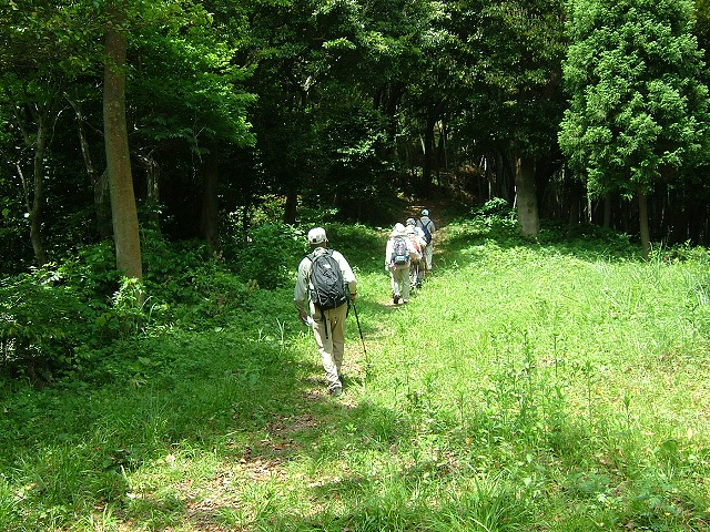 「里山を歩く会」なので、島の「鬣(たてがみ)山」に登りました。むせ返るような夏草です。滴り落ちる汗を拭きながらも