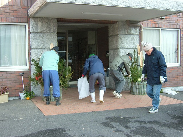 が、曜日にとらわれない我がNPOは朝から門松の設置にかかりました。