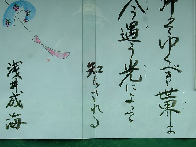 お寺の掲示板です。「帰ってゆくべき世界は 今遭う光によって 知らされる」う~ん・・・。