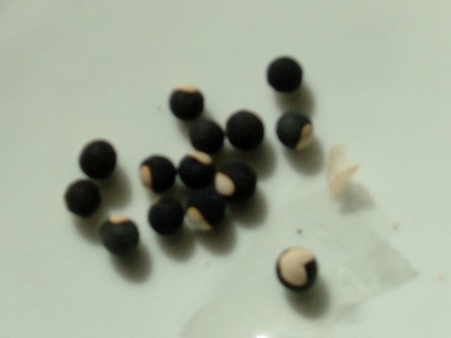 一つの風船に3個づつの種を持ちます。小さな黒い種には「白いハートの模様」がついていてカワイイ!種は来年また生まれ変わります。