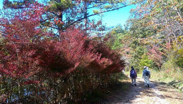昨日の「まんさく湖」での写真です。これは大きく育った「どうだんつつじ」の見事な紅葉です。