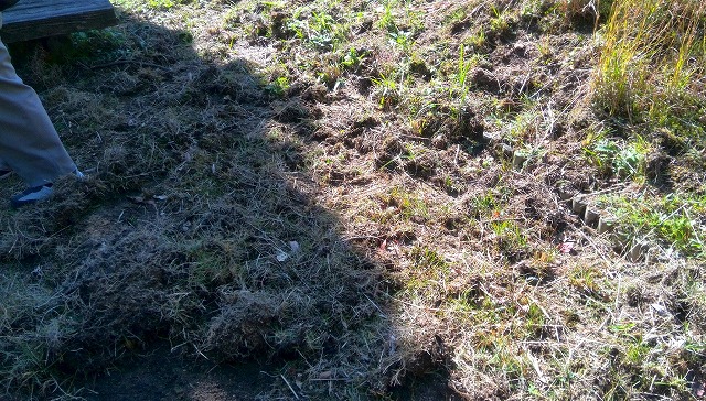 道や道から外れた至る所にイノシシが耕した跡があります。相当固い場所も何のその、あの鼻で掘り返しています。みみずを捕っているのだそうですが・・。