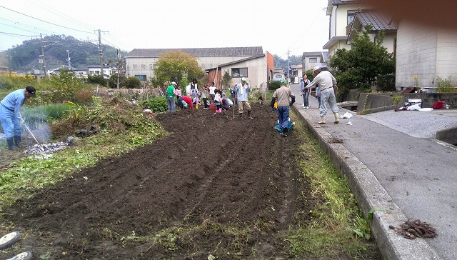 掘り終った所からどんどん(肥料を入れながら)畑づくりをしていきます。