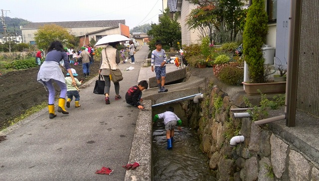 が、子どもたちは直ぐに厭きて水遊び。付き添いの母親たちもスマホをいじったりおしゃべりしたり。