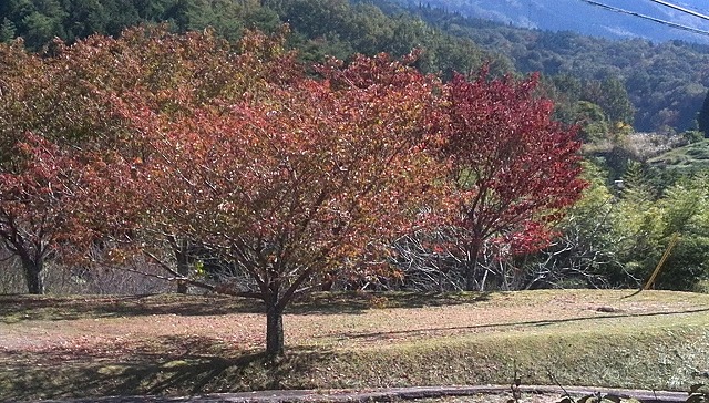 昼食を摂った部屋から見えた桜紅葉。今はすっかり散ってしまったでしょうね。