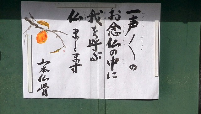 お寺の掲示板です。「一声一声の お念仏の中に 我を呼ぶ 仏まします」 この所、あまり頻繁に交換されなくなりましたが、お寺らしいのが増えました。お寺のどなたが選んでおられるのか・・。