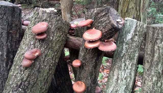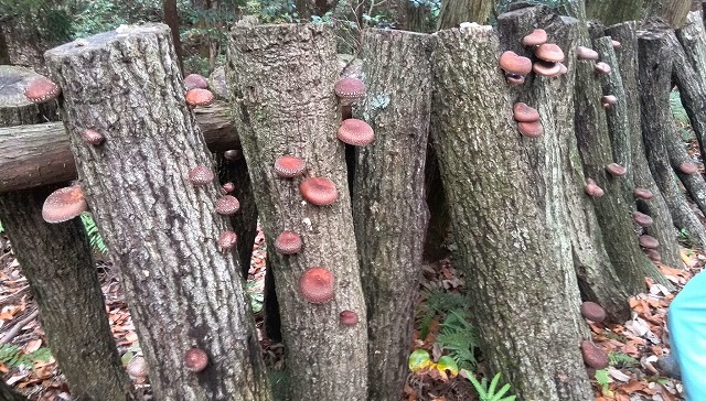 午後は30分余の山歩きで知人の椎茸畑(?)に行ってきました。「種打ち」をして3年目だそうです。「種打ち」後2回の夏を越して初めて椎茸が出るのだとか・・。肉厚の立派な椎茸をいっぱい採ったど~!