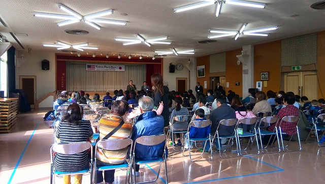 午後から「日米交流村」というイベントが公民館で開かれました。今年で4回目との事です。昨年、初めて参加しましたが、米軍の家族たちが50~60人位(通津の大人や子どもも同数位)の参加があり、とても賑わいました。しめ飾り・布ぞうりを作るコーナーやお餅つきなど多彩な準備がなされました。今年の目玉は「羽子板づくり」でした。ところが今年の基地からの参加は10人余の子どもたちだけでした。用意した行事が多すぎるのでは?と思えるほど。その分通津の小中学生が日本の慣習に向き合えるチャンスになったようです。私は一足お先に帰ってきました。