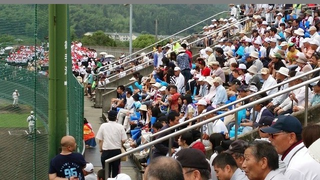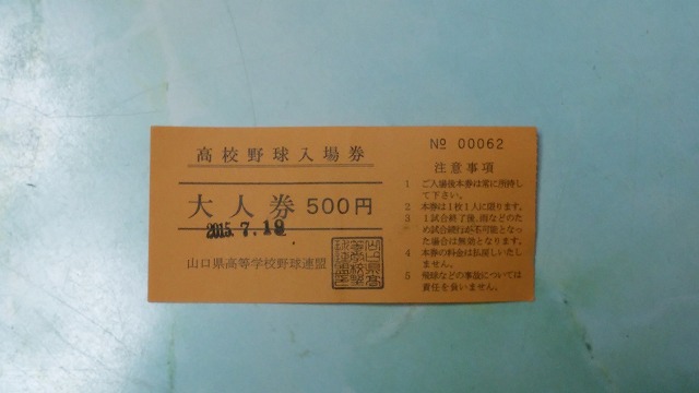 第97回全国高校野球選手権・山口県大会:明け方からの雨で今日の試合はダメかな?と思いながら球場に電話で問い合わせると「予定通りです」とのこと。時々ワイパーを動かしながら柳井を目指しました。球場の駐車場からスタンドの椅子にシートを敷いて座るまでは降っていた雨が、ピタッと止み10時試合開始です。岩国高校と柳井高校とは両校とも白地にエンジでIWAKUNI・YANAIと書かれており見分けが付き難いったらありません。ソックスだけが岩国は白、柳井はえんじです。それはさておき、試合は6回まで岩国が押され気味のゼロ行進。7回の表に柳井が1点を先取して均衡が崩れました。ラッキー7だから「点が入るぞ~!」と思っていたら、相手のエラーにも助けられて4点獲得。9回に1点を返されたものの4:2で岩国高校が今大会での1勝を手にしました。う~む・・。勝ったものの「強い」感じが全然しませんでした。投打ともソコソコで何とか勝ったって感じですかね。柳井の方が底力があるんじゃないのかな?まっ!勝って明後日の試合出場の権利は得ました。相手は今日の第2試合で勝った高川学園です。高川学園は華陵との試合を17×:3(5回コールド)で制しました。手強そうです。