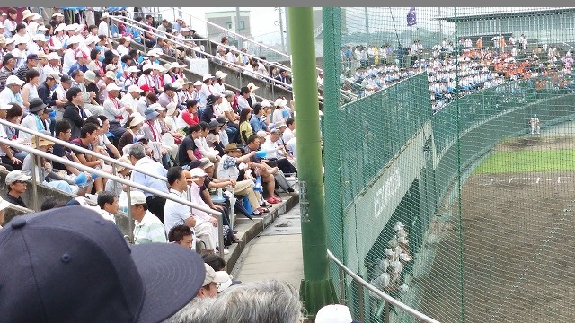 夏休みの日曜日とあって柳井球場はこれまで見たことも無いほどの大盛況。両校とも応援団が頑張っていました。