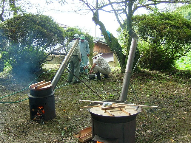 「流れるそーめん」以外に「お釜で炊き上げたご飯で握ったオニギリ」。塩味のおこげオニギリ最高! グランドゴルフの練習を済ませた「昔は子どもだった」皆さんもお呼びして賑わいました。
