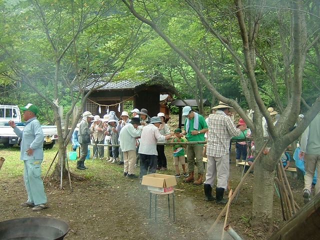 「そーめん流し」会場(沢瀉広場)では着々と準備中。