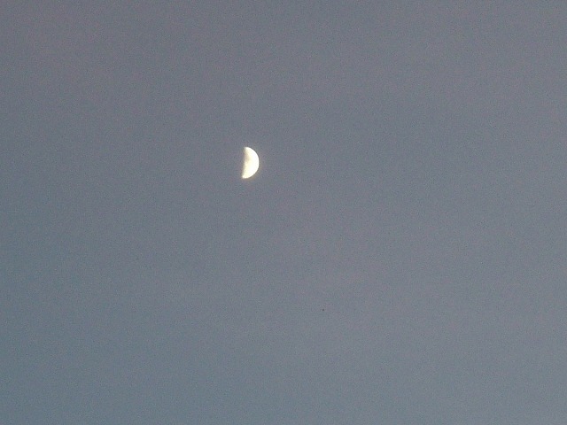 5時の中天にかかる「上弦の月」です。1時間後にはピカピカに輝き、日付が変わる頃月は退き、こぼれ落ちんばかりの秋の星座で埋め尽くされました。