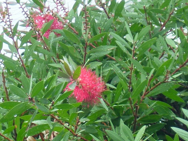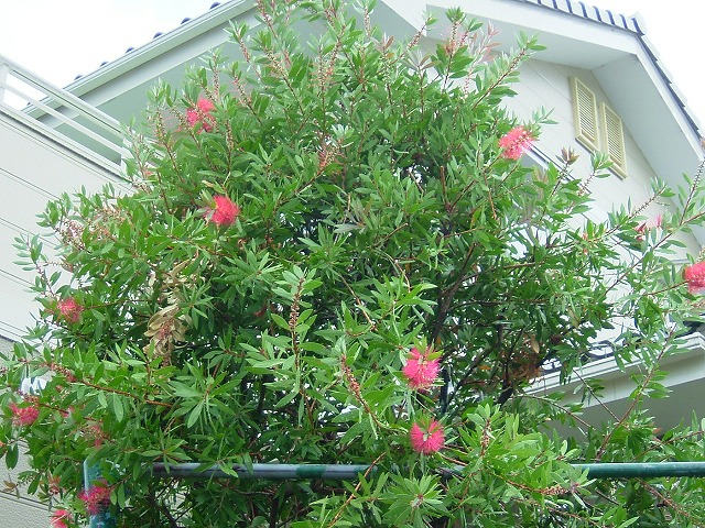 ご近所の「金宝樹」が咲き始めています。春と秋の2回咲いて楽しませてくれる優れものです。私はもっぱら「ビンブラシの花」と呼んでいますが、このアップを見て下されば納得でしょ?