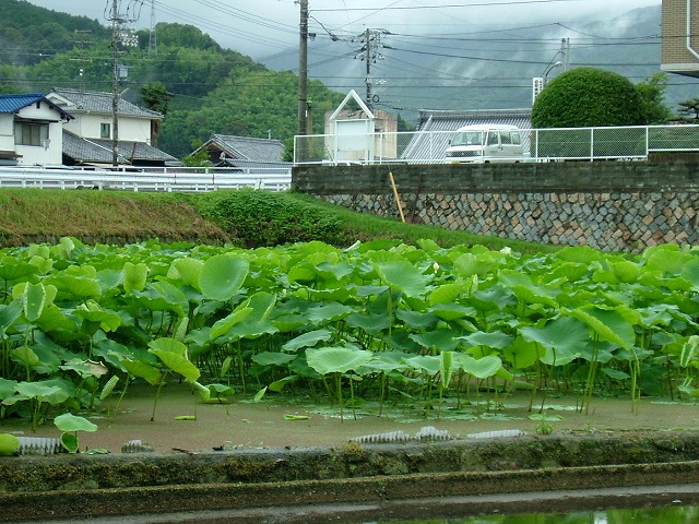 レンコンの葉っぱも大きく育ち、緑一色です。