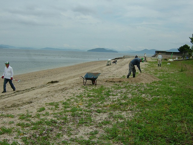 カンカン照りの多湿な日の事を思えば、作業には最適な日でしたが、それでも汗は絶え間なく流れて大変な作業です。