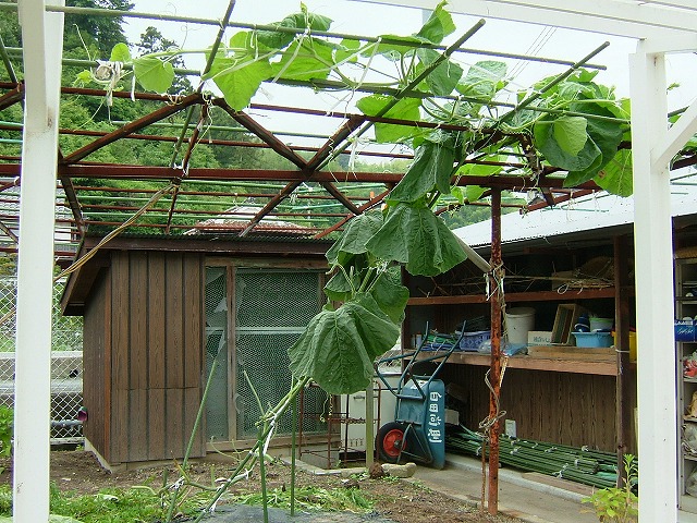 小学校の近くを歩いていたら「でっか~い葉っぱ」を見つけました。カボチャのようでもありますが、直径が70㌢くらいもある葉っぱは初めてです。畑の持ち主にあったら「一体あれは何なのか」聞いてみようと思います。