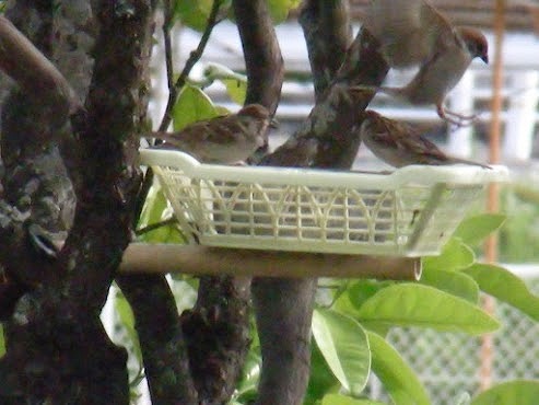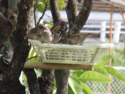 数年前から金柑の木にエサ台をつけています。贅沢な話ですが、通津産の美味しいお米を与えています。正直な事を言えば私は鳥を好きではなく、どちらかと言えばキライです。子どもたちが小さい時に数羽の十姉妹を飼っていたこともありますが、それでも触る事はできませんし、鶏肉を食べるなど問題外です。