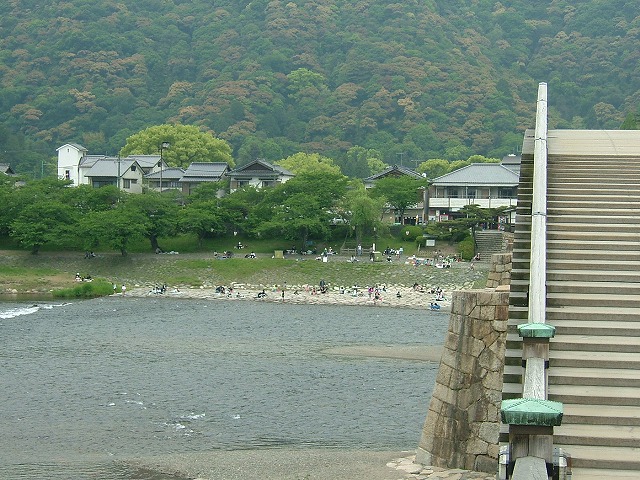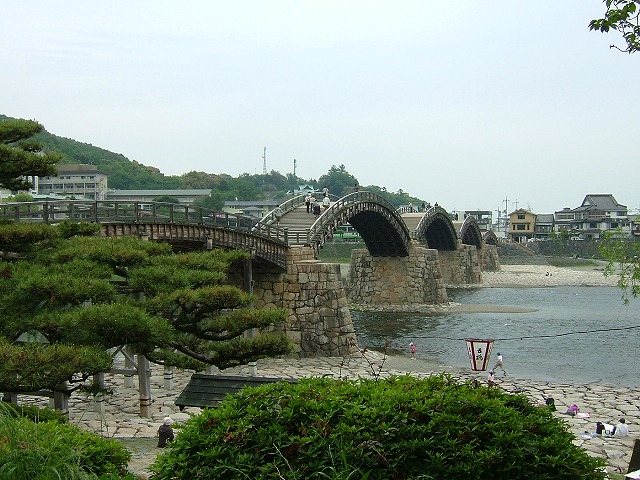 人によっては「懐かしい」と思って下さるかも知れません。錦帯橋のてっぺんから上流(遊覧船が一隻います)と下流(竜江)を撮ってみました。「りゅうこう」は竜江?それとも竜口?ここで投身すると水底に沈んだまま海まで流される・・なんて聞いたことがあります。真偽のほどは(どなたか試してみてください)。