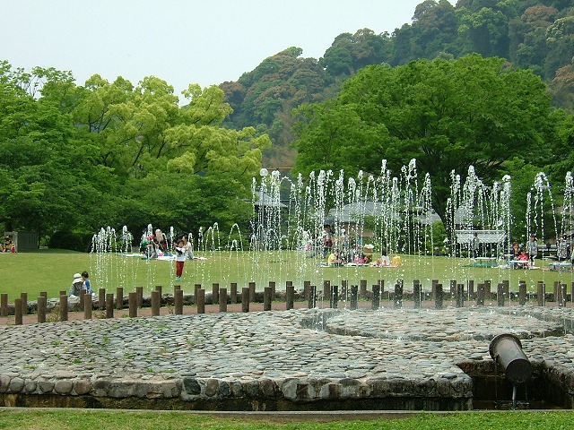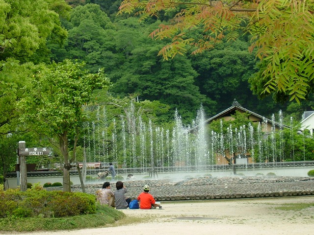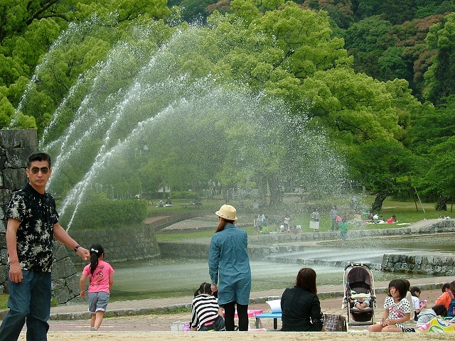 岩国高校跡の公園(噴水公園?)ではすべての噴水が働いていました。さすがに水に入る子はまだいませんが、なかなか良い風景です。