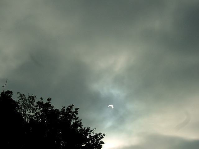 明け方までの小雨、起きた時も曇りで「金環」を観ようなどとは全く考えていませんでした。観測のための準備も全くなし。なのに・・・ゴミを集積所に置いての帰り道周りの空気が急に明るく感じられました。雲がきれたようです。「裸眼で観ちゃいけないよ」とTVがうるさいくらい言ってたけど観ないではいられませんでした。雲間からピッカ~と光ってました。山口県での観測時間は7時26分・観測できるのは90㌫と言われていましたが、帰宅して直ぐにカメラを向けたのが7時33分。クリックして拡大すると何となく怪しく写ってます。