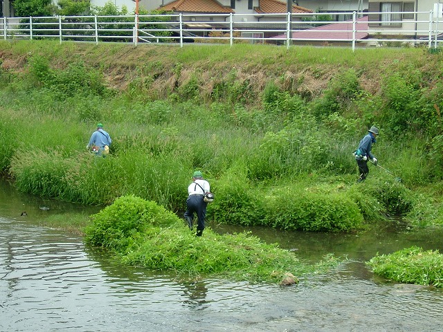 NPOの定例作業日でした。連れ合いは月末のお江戸行きで不在でしたが、他の会員の皆さんがあっと言う間に伸びた葦を刈りました。川は長いので、一通り終えるまでに回数を重ねねばなりません。その頃には前に刈った場所がしっかり伸びてくる構図なので、涼しくなるまでこの作業は続きます。