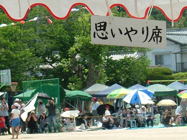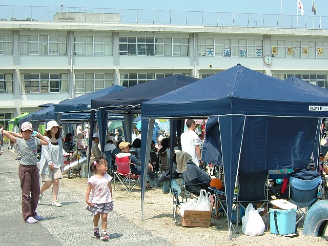 運動会に行くたびに驚くのはその風景です。家庭用テントとビーチパラソル・テーブルセットがずらりと並んだ様子は「普通じゃない」感じです。