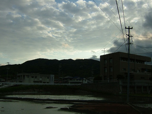 今日の午後6時半の空です。カメラを海の方に向けると明るく写り、実際には明るい日没時の西側は逆光で暗くなっています。