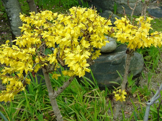 「レンギョウ」春先の黄色い花の代表でしょうか。色は派手でもたたずまいは控えめです。