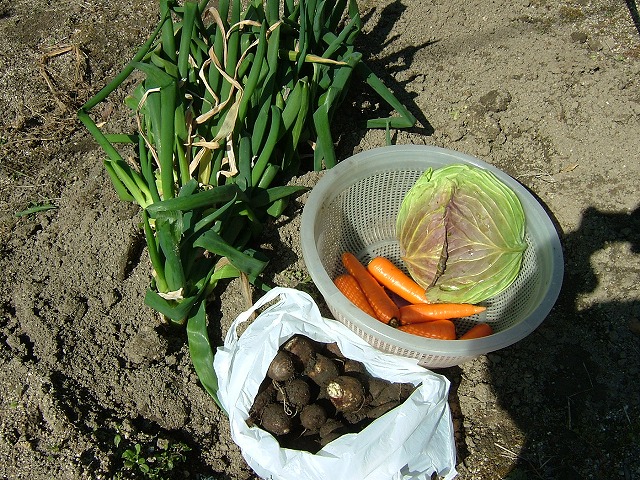 知人が一輪車を押して野菜をどっさり届けてくださいました。立派なネギは「畑にいけといたらええんよ」と、その作業までしてもらいました。氏素性がはっきりした美味しい野菜を食べられるのは幸せです。