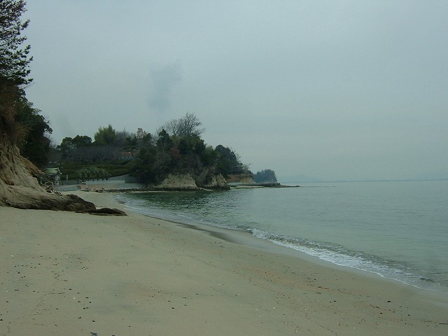 桜貝の殻を探して足元ばかりを見ながら歩いていたら、誰もいないと思った浜辺でオジサンが一人お弁当を食べていました。