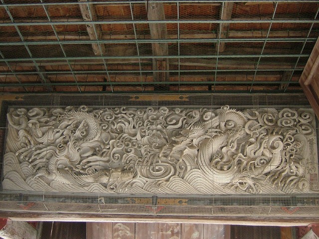 中に入って屋根下を見上げると何枚かの額が掛けられていました。その内の1枚が丁度干支の「タツ」だったのでパチリ。