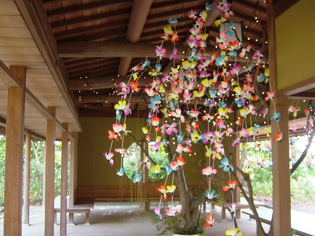 「芳松庵」の庭の休憩所には、こんな可愛い飾り物がありました。色とりどりの「おいばね」です。