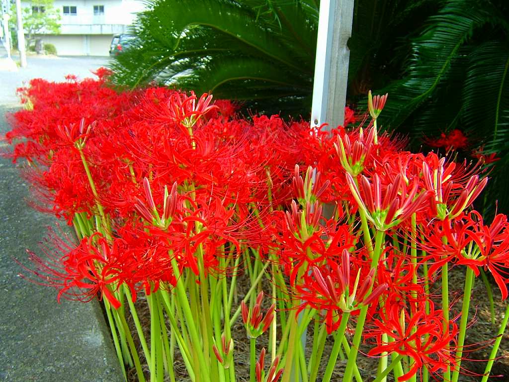 私の花壇の傍にある(人の)畑に黄色い曼珠沙華が咲き始めました。