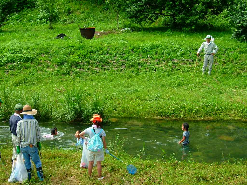 通津のこども会(つづっ子クラブ)は一人の男性がボランティアで主催する会で、特に会員を定めている訳ではありません。行事のたびにチラシを見て参加するこども達がその日の会員です。この男性もNPOの会員の一人で、趣旨に共感するNPOは行事を共催しています。今日は、「海の日に川のお掃除」と銘打って参加者と通津川のゴミを拾い、その後でお楽しみの「そうめん流し」をしました。