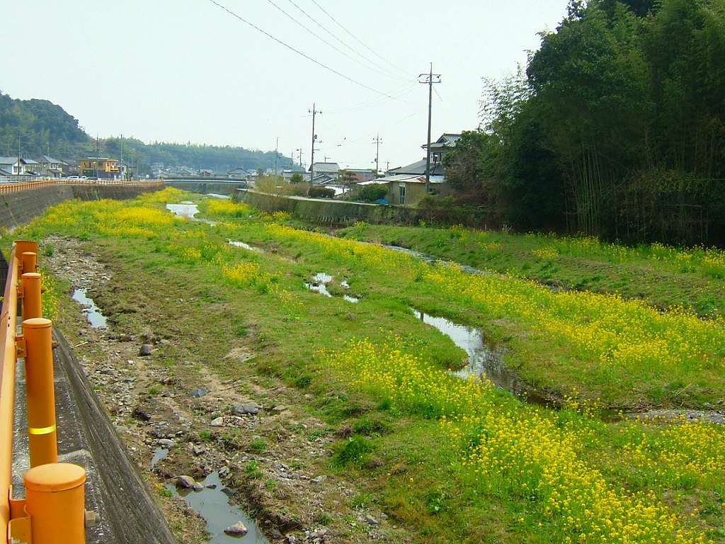 通津川沿いの県道は徒歩や車では感じませんが、自転車で走ると山へ向かって登っているのを実感します。従って川にはこのような堰が幾つも造られています。堰を流れ落ちる水を眺めるのが好きです。