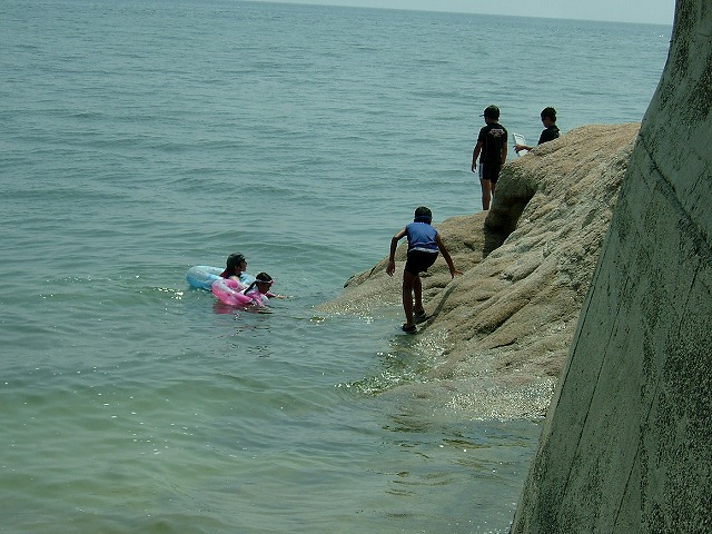 今日からお盆休暇が始まるそうですが、マイビーチには人影もありません・・と思ったら我が家に一番近い岩場で遊んでいる一組がいてホッと一安心。