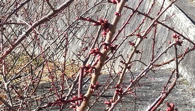 石仏巡りの道中での「紅梅」です。まだ蕾だったり咲き誇っていたり・・。多分種類があるのでしょうが。