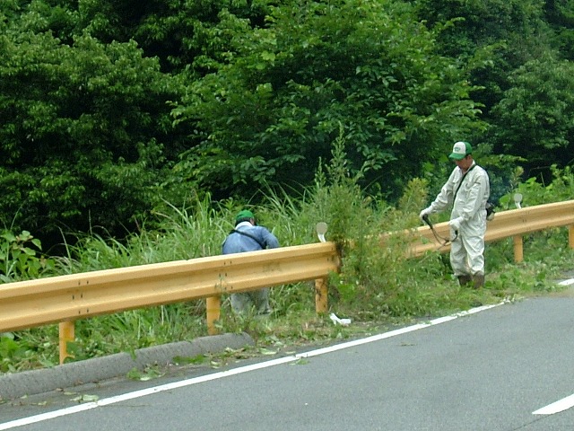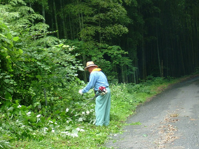 今日から県道の草刈作業を開始します。作業には好都合の曇り空は良いのですが、女子サッカーW杯の決勝戦があるのが気懸りで。8時キックオフの試合開始時間には集合場所へと車を走らせていました。な・な・なんと!集合場所の到着前に2点先取されたのをカーラジオで知りました。幸か不幸か作業に専念できる環境が整った訳です。曇り空とは言っても体を動かせば汗がポタリポタリと落ちてきます。私ができる仕事は刈られた草をかき集めて片付ける事くらいですが、刈る作業はさぞや大変だろうと思います。