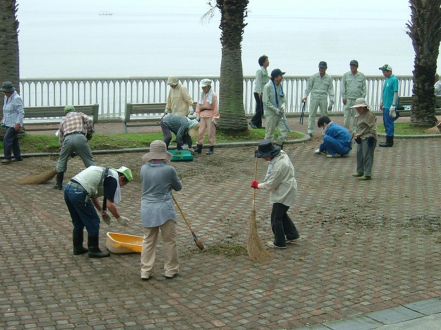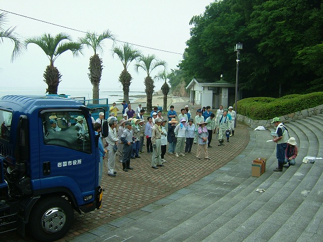 久し振りの真夏日でした。毎年この時期に実施される「海浜(通津美ヶ浦)清掃」が行われ、NPOとして参加しました。通津地区社会福祉協議会主催の行事で、通津地区の各団体・企業・個人が参加します。平成の大合併で由宇が岩国市になって以来、由宇の「潮風公園」がメインになり、通津はおいてけぼりを食った感じです。白砂青松そのままの素敵な場所なのですが、この頃はレストランや売店が完備している方が好まれるようです。