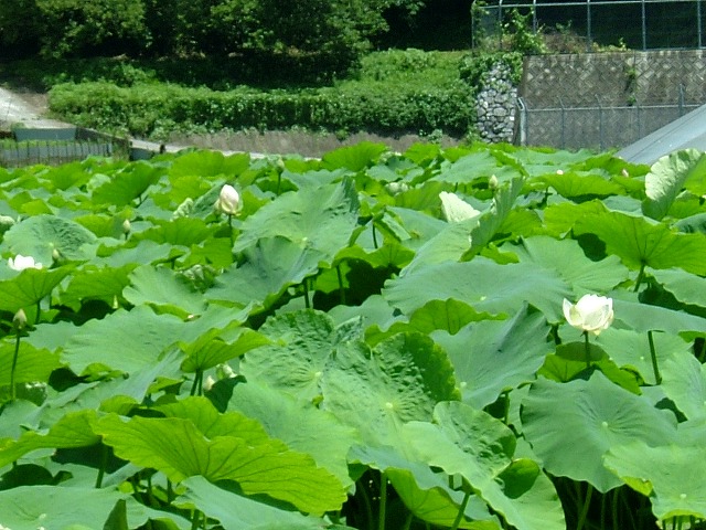 雨も暑さも例年より少な目じゃないかと感じていましたが、暑くなりレンコンは順調に茎を伸ばし、花を咲かせ始めました。