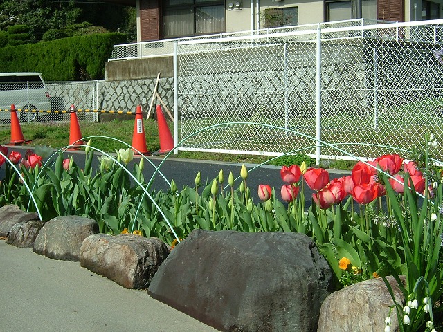 チューリップの歌の通りに「赤・白・黄色」に咲いています。