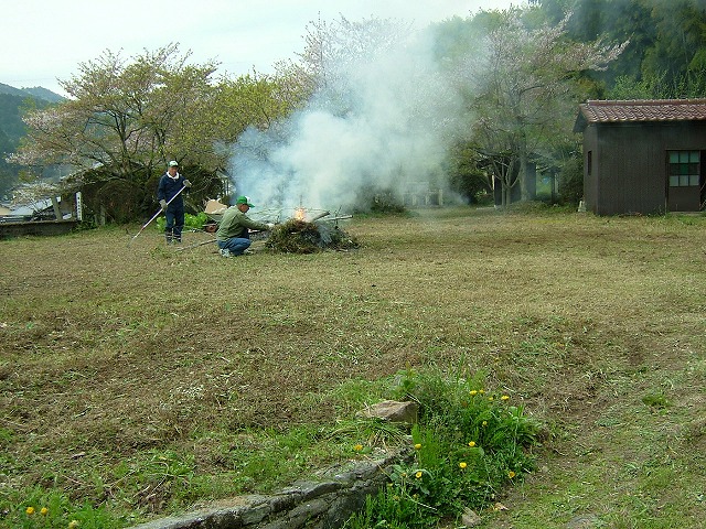 土曜日にNPOで史跡広場の草刈をしました。13人で2時間余。こんなにきれいになりました。野焼きは禁止?勿論消防署に届け済みです。