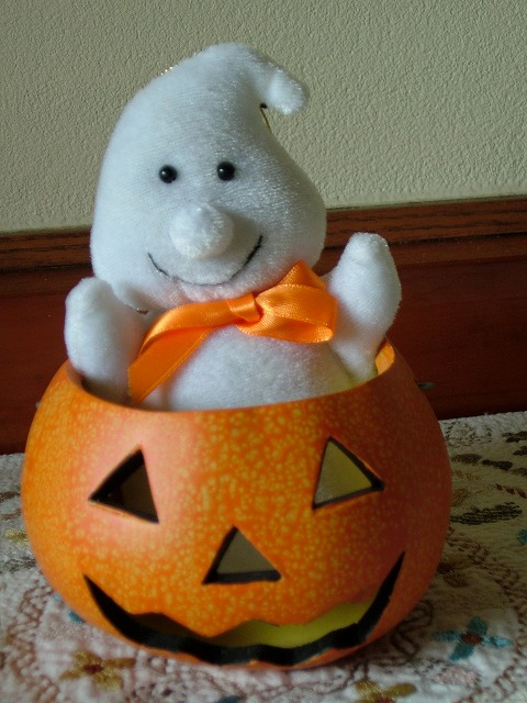 今月31日はHalloweenです。玄関にカボチャを飾りました